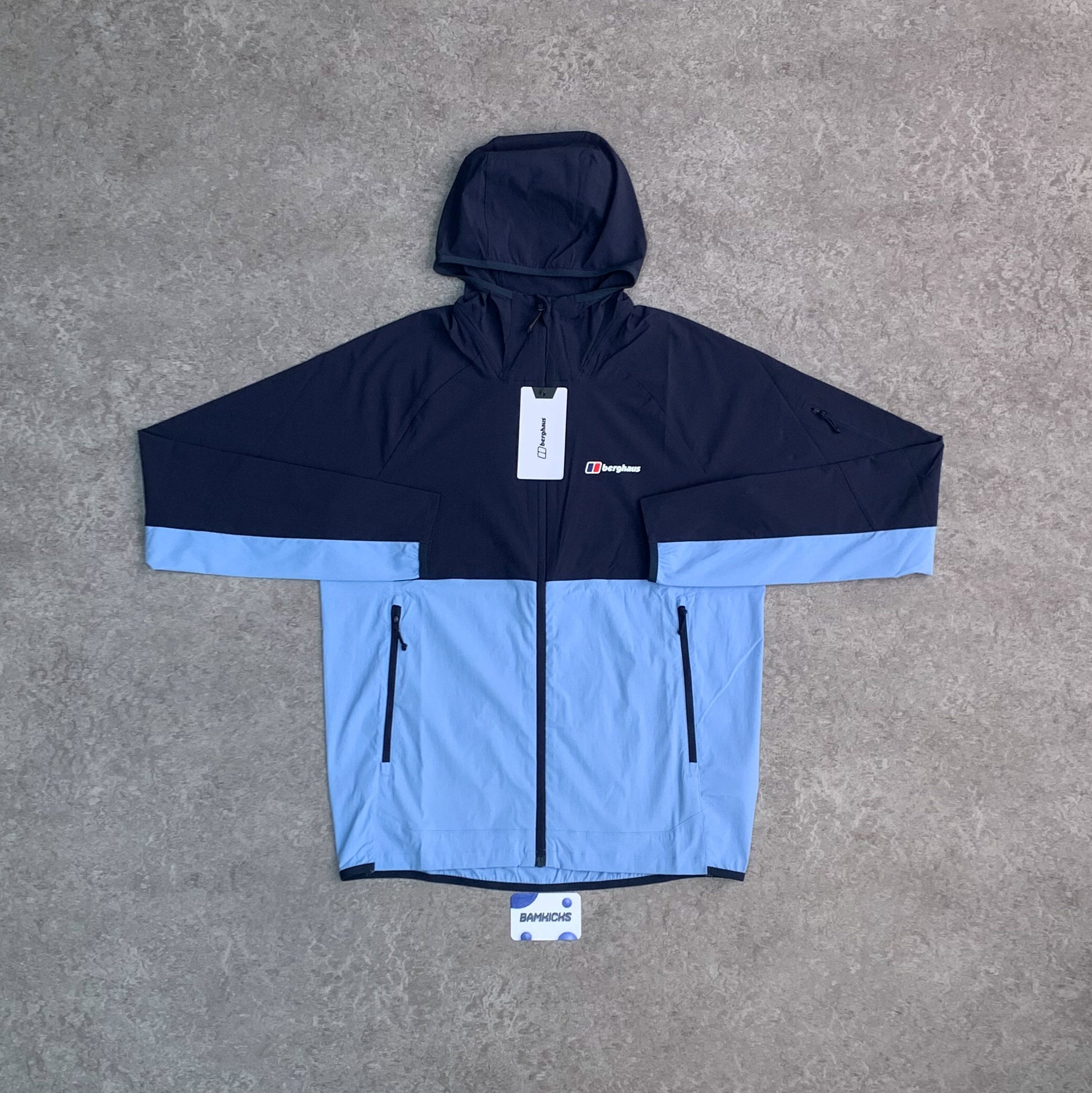 Stay protected on every adventure with the Berghaus Theran Jacket in Navy and Blue. Built from durable, weather-resistant fabric, this jacket keeps you shielded from wind and light rain while remaining breathable for all-day comfort. The lightweight construction allows easy layering, and the adjustable hood and cuffs help lock in warmth when conditions change.