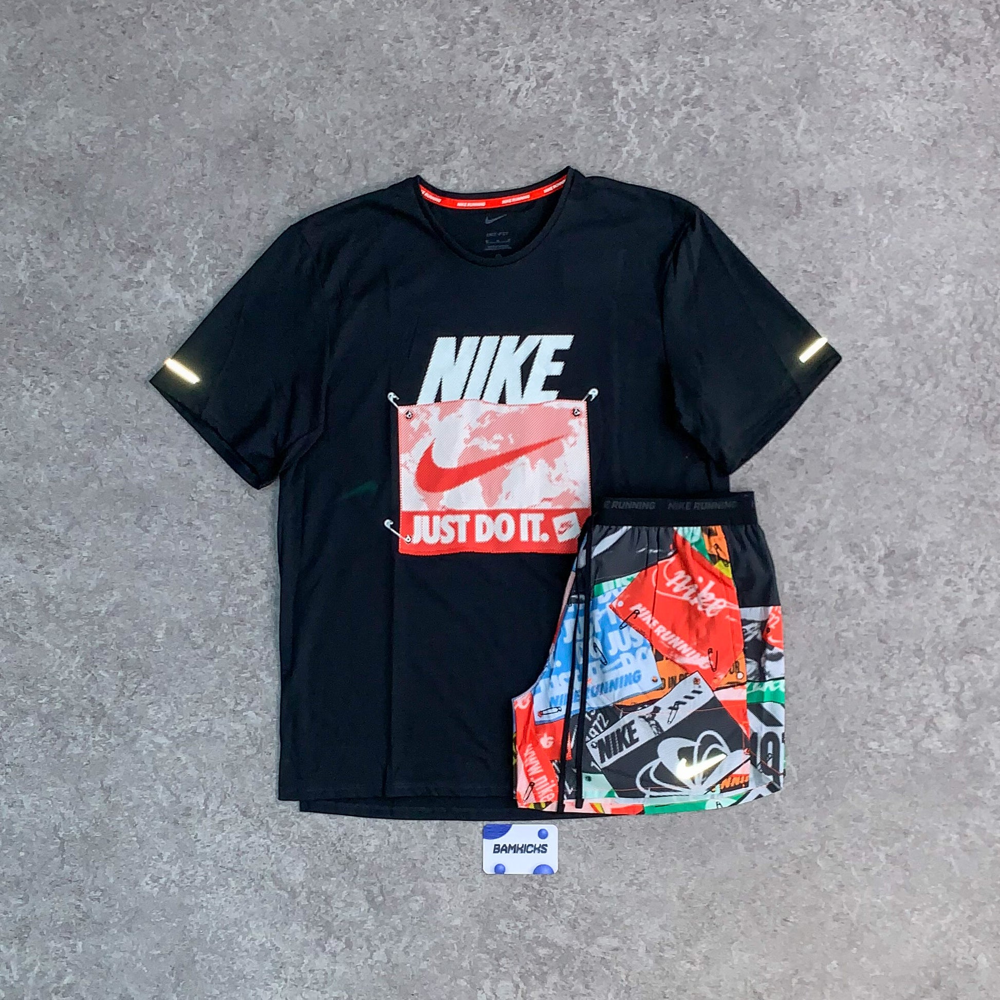 Designed for performance, the Nike Rise 365 Miler and 5-inch Flex Stride Shorts set in Black, Total Orange and Multi delivers lightweight comfort and athletic function. The sweat-wicking Miler tee helps keep you dry, while the soft, breathable fabric ensures lasting comfort.