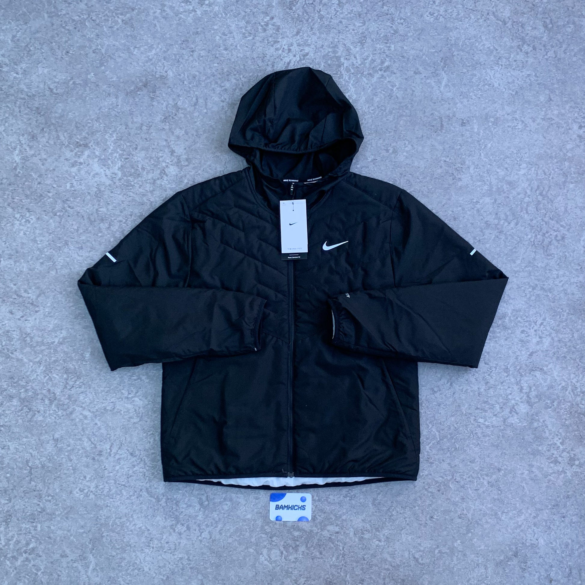 Stay protected in any weather with the Nike Therma-FIT Repel Jacket in Black. Built with insulating Therma-FIT technology, it helps manage your body’s natural warmth while keeping you comfortable in colder conditions. The water-repellent finish adds an extra layer of protection against light rain, making it ideal for training outdoors or day-to-day wear.